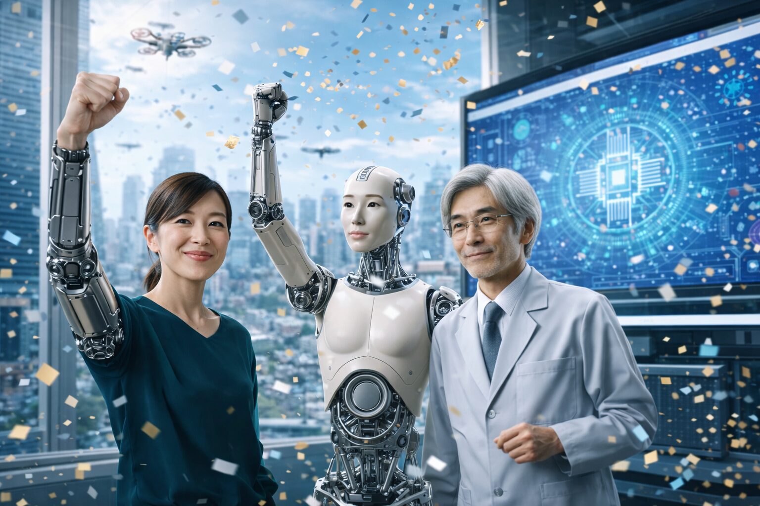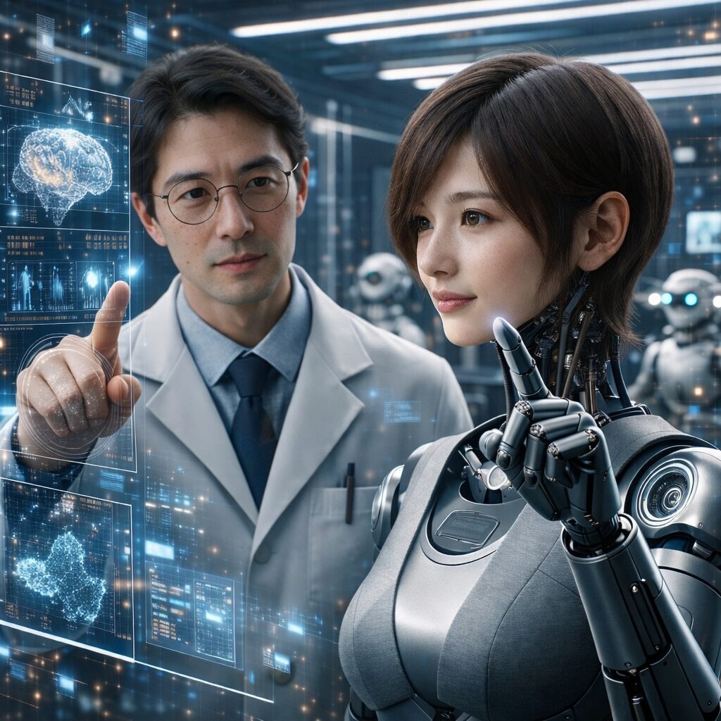 フィジカルAIとは、 センサーで現実世界の状態を捉え、AIが判断し、ロボットや機械が実際に動くことで、人や社会の現場を支える人工知能です。